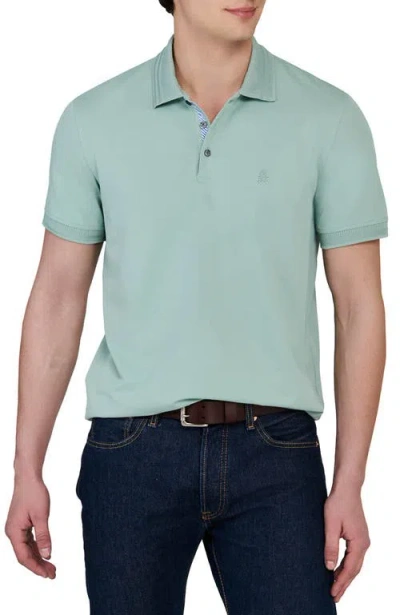 This solid pique performance polo is built for all-day comfort with quick-dry wicking and odor control to help you stay cool and fresh. It features a variegated rib polo collar and cuffs for a subtle, elevated detail. The straight hem makes it easy to wear untucked or tucked. The placket, inside neck, and bottom vents feature our signature stripe trim and our tonal logo embroidered on the chest are just enough details to make this polo a signature piece in your wardrobe. Dress it up with chinos or keep it casual with denim or shorts. •Fabric Finish: Quick dry wicking, odor control•Collar Type: Polo collar •Features: Ribbed sleeve cuff, straight hem •Distinctive Features: Contrast design printed on jacquard rib knit collar, placket, and ribbed sleeve cuffs