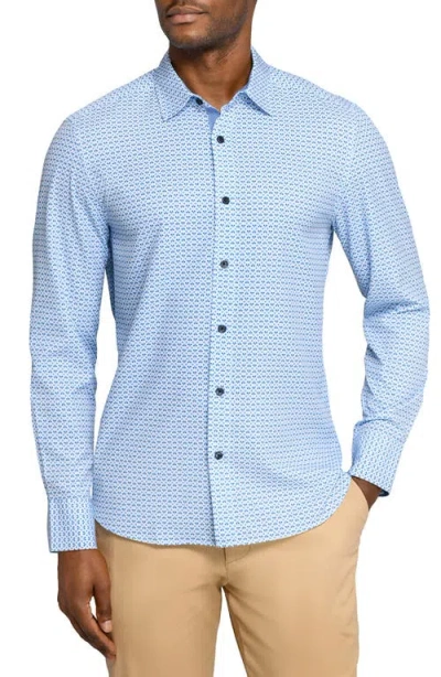 Effortlessly elevated. This performance stretch shirt is designed to flex with your day—cut from breathable, wrinkle-resistant fabric that holds its shape whether you're leading a meeting or grabbing dinner downtown. Subtle interior contrast details at the collar and cuffs add just the right amount of edge, while the clean long sleeve silhouette keeps things crisp and versatile. •Style: Slim fit •Fabric Finish: Four-way stretch for greater mobility, Freshness & odor protection, Moisture wicking, Quick dry properties, Wrinkle free •Collar Type: Spread collar •Cuff Type: Adjustable cuffs with buttons •Featured: Curved hem •Distinctive Features: Contrast print details in inner collar band, Under placket, Inner cuff