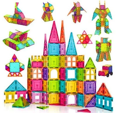This 112-piece 3D magnetic construction set is designed for versatile STEM-based learning and structural exploration. Each translucent tile is manufactured from high-quality, non-toxic ABS plastic using an ultrasonic welding process to securely encapsulate the internal magnets for enhanced safety and durability. The set features a variety of geometric shapes and includes a wheeled vehicle base to support the creation of both stationary architectural models and mobile designs. Each piece is engineered with smooth, rounded edges and high-transparency finishes to assist in color recognition and spatial reasoning development. Comprehensive 112-Piece 3D Magnetic Building System High-Grade Non-Toxic ABS Plastic with Ultrasonic Welded Seams Safety-First Design Featuring Rounded Edges and Smooth Surfaces Includes Integrated Wheeled Vehicle Base for Mobile Constructions High-Transparency Rainbow Colors for Visual Sensory Development Universal Compatibility with Major Magnetic Tile Building Brands Reinforced Internal Magnets for Stable Structural Integrity Convenient Heavy-Duty Storage Bag Included for Organization