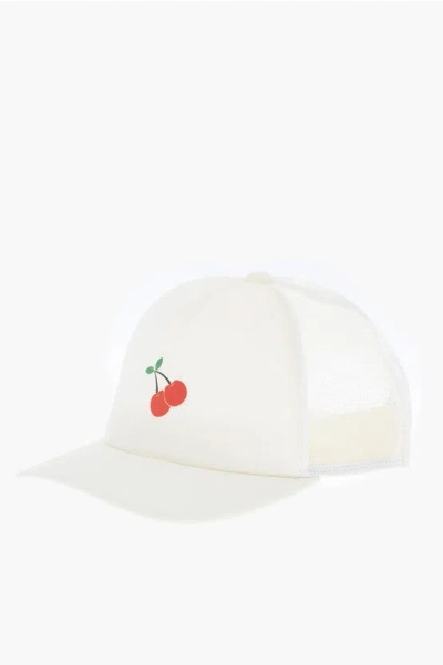 Solid Color Cap With Mesh Lining And Cherry Print In White