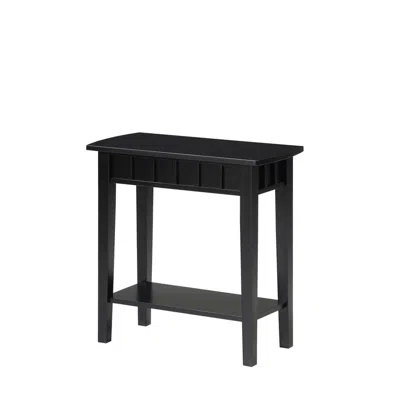 Modern and transitional, the Dennis End Table with Shelf by Convenience Concepts has what it takes to make a statement in your home. Slightly curved edges provide a fashionable look while the table's detailed apron pane boasts a traditional feel that will blend seamlessly with current furniture. Place in the living room, home office, or entryway and allow this multifunctional piece to optimize storage and display thanks to its two tiers of table space. Finished with a non-lead-based paint, this table's sleek tapered legs built of solid rubberwood support the two tiers of shelving crafted from MDF. You are sure to find a finish to compliment current home décor with the wide assortment of finishes available. Look for more beautiful coordinating pieces by Convenience Concepts to complete the perfect home transitional look, each sold separately.