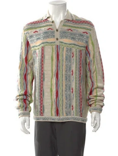 Coogi Pullover Neutrals Patterned Long Sleeve with Collar Button Closure Fit: Sweaters by Coogi typically fit true to size. | Coogi Patterned Collar Pullover in Neutrals, Men's L