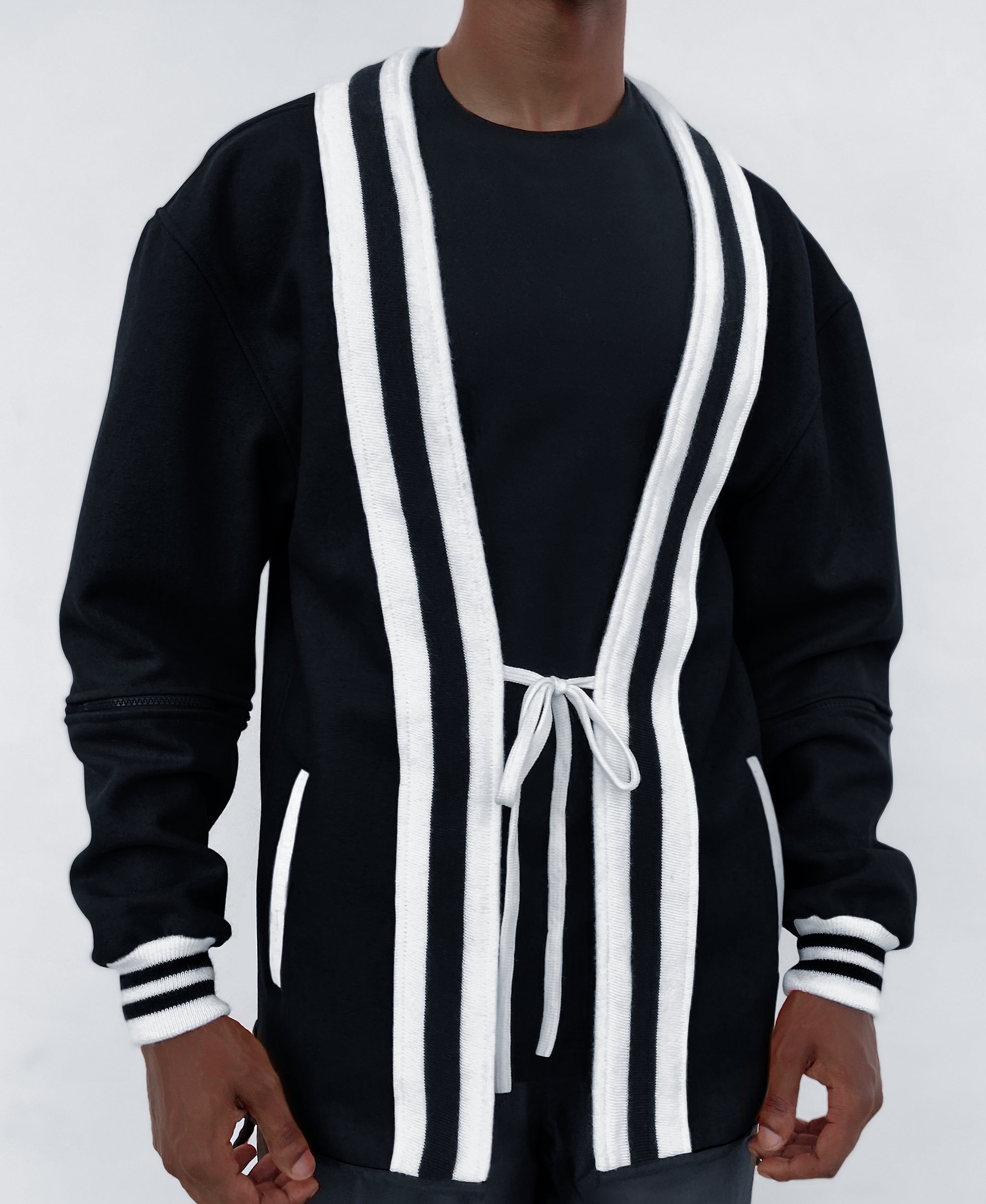 Men's Black Cool Kimono Varsity With Zip-off 1/2 Sleeve