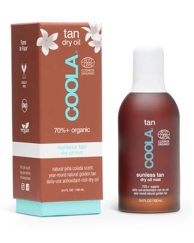 COOLA Organic Sunless Tan Dry Body Oil Mist in Beauty: NA. COOLA Organic Sunless Tan Dry Body Oil Mist in Beauty: NA. Earn a year-long golden glow without the damaging side effects. COOLA'S Organic Sunless Tan Dry Body Oil Mist features 70%+ organic ingredients that deliver a natural-looking radiance that lasts up to three days. This fast-drying, streak-free, transfer-free formula is enriched with Argan Oil, Vitamin C, Hibiscus, and Chamomile Extract leaving you with smooth and hydrated skin.. Infused with a natural Pina-Coco scent to cancel out self-tan smell. Eco-certified cosmos organic. Non-GMO, vegan, cruelty-free, free of oxybenzone, parabens, sulfates, and phthalates. 3.4 oz. Hold sprayer 2-4 inches from body and apply liberally. Let the tan develop for 6-8 hours before showering. COLX-WU46. CL10304. At COOLA, they're passionate about creating beautiful product experiences that embody a happy, healthy lifestyle. They believe that clean beauty should feel as good as it is healthy, which is why they're on a quest to develop organic products you'll love wearing everyday.