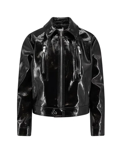 Classic collar Metallic zip closure Long sleeves with iconic snap button Lined 65% Recycled Polyurethane, 35% Cactus Lining: 52% Viscose, 48% Cupro SKU: COPBL34F6054BLK