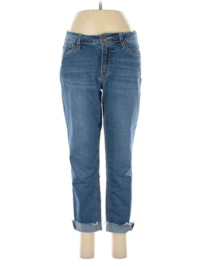 Copperflash Jeans, Size: 8. Item Details: Blue, Solid Pattern, Medium Wash, Straight Leg, Cropped, Boyfriend, High Rise, Women's Bottoms, 100% Polyester