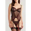 COQUETTE Mesh Underwire Bustier & G-string Set In Black