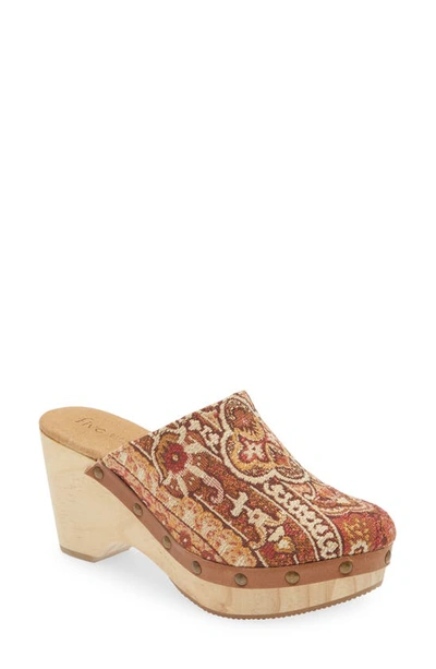 A curvy platform and heel carved from a single piece of natural wood elevate the vintage aesthetic of a studded clog in rich leather or genuine calf hair. This style is part of the Five Worlds by Cordani collection, which was inspired by the ancient Aztecs and the Mexican landscape.