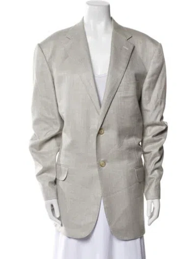 Corneliani Blazer Grey Pointed Collar Front Pocket & Button Closure Fit: Jackets by Corneliani typically fit true to size. | Corneliani Blazer in Grey, Women's XXL