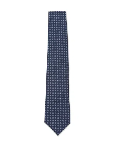 CORNELIANI Blue Tie With Embroidered Geometric Patterns