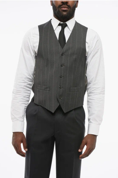 CORNELIANI Cc Collectio Striped 5 Buttons Refined Wool Blend Vest In Gray