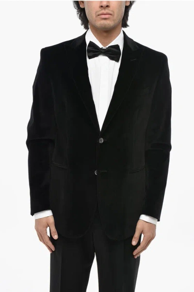 CORNELIANI Code Velvet 2 Buttons Blazer With Peak Lapel In Black