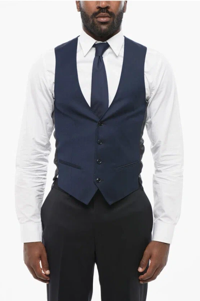 CORNELIANI Code Wool 4 Buttons Vest In Blue