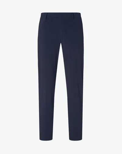 The TECHWOOL project: an advanced technical fabric featuring a pleasant structure that is extremely flexible and compact, with excellent anti-crease and rainproof properties. The modern and functional look transfers the typical qualities of sportswear to a sophisticated and dynamic style that caters for different scenarios, from the urban context to the great outdoors.These chino trousers are a versatile and stylish choice, perfect for casual yet refined look. The dark blue colour easily matches a range of styles.