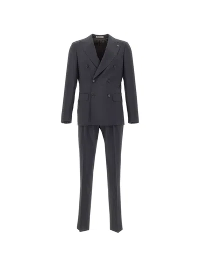 black lapel pin tonal buttons flap pockets buttoned cuffs back vents