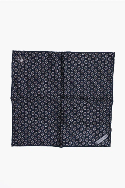 CORNELIANI Geometric Patterned Silk Pocket Square Grösse Unica In Blue