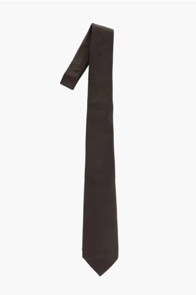 CORNELIANI Hand Stitched Solid Color Silk Tie In Brown