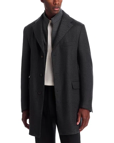 Corneliani Herringbone Bib Top Coat.Color:Charcoal.Size:56 IT / 46 US.Material:Shell and bib: 99% wool/1% elastane.Coats.