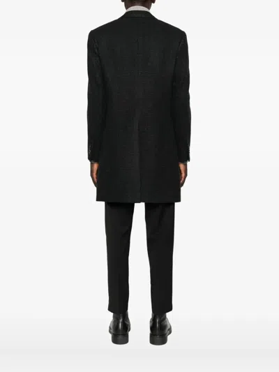 CORNELIANI Id Notch Lapel Coat With Zip And Buttons Double Closure In Black