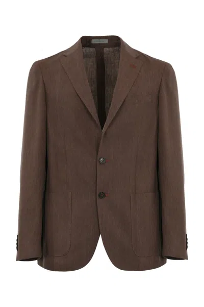 CORNELIANI Single-breasted Wool And Silk Jacket In Brown