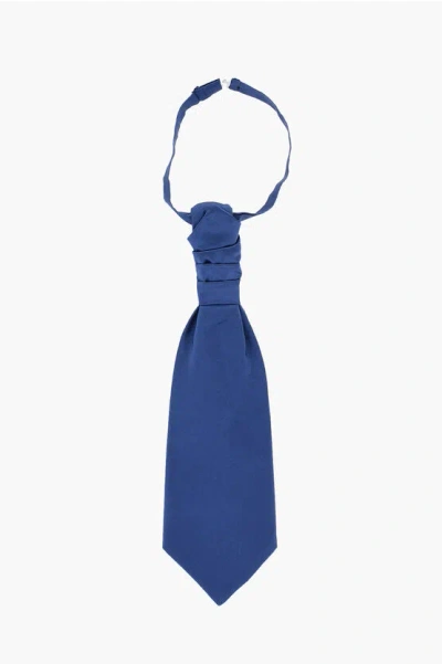 CORNELIANI Solid Color Satin Ascot Tie In Blue