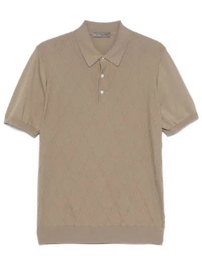 CORNELIANI Textured Diamond Pattern Polo Sweater In Brown