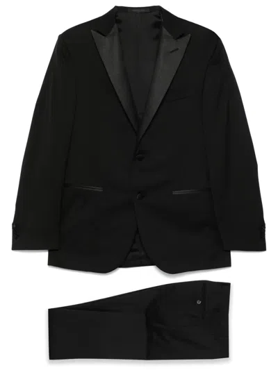 A distinguished black suit from Corneliani, tailored from 100% virgin wool, embodies prestige and modern refinement. The single-button closure and notched lapels enhance its sophisticated silhouette, while the straight-cut trousers elegantly complement the overall design, making it an ideal choice for formal occasions.- Composition: 100% virgin wool - Style: Formal, Elegant - Gender: Men