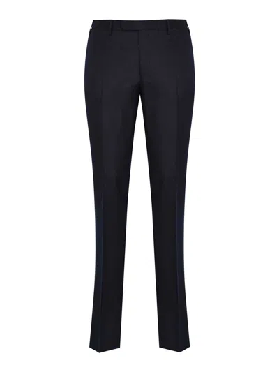 wool blend trousers corneliani fabric: wool blend with a smooth, compact feel pattern: solid color rise: mid-rise with belt loops closure: front with hook, button, and hidden zip pockets: side slant pockets and back welt pockets with button length: long details: ironed front pleat, elegant and clean line, smooth waistband with belt loops, made from slightly stretchy fabric for superior comfort lined: no fit: regular fit