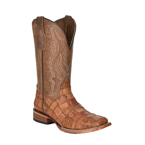 Corral Men's Cognac Caiman Patchwork Wide Square Toe Boots L5950 Style number: L5950 Caiman vamp leather Embroidery on shaft Pig lining 12" shaft height Pull on entry tabs Goodyear welt construction Leather outsole material Wide square toe shape Cowboy heel type 1 1/2" heel height All item descriptions are taken directly from the manufactures, unless not available. Some of our items are hand-finished, and specifics can vary between items of the same style. Shipping Handling Time. Orders are usually processed within 24 hours, and will be sent out on the next business day. Shipping Costs. Boots purchased within the Continental US or from an APO qualify for FREE SHIPPING! International packages will be shipped via USPS Priority Mail. Shipping Methods. Free shipping shouldn't mean slow shipping. Unlike many online retailers, we only use UPS Ground and USPS Priority Mail for our standard shipping. All packages are tracked and insured. If you prefer a different shipping method or need your order expedit