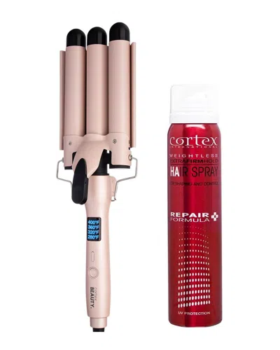 CORTEX BEAUTY Cortex Digital Wave Maker 1 Foldable Three Barrel Waver & Hairspray Set In Pink
