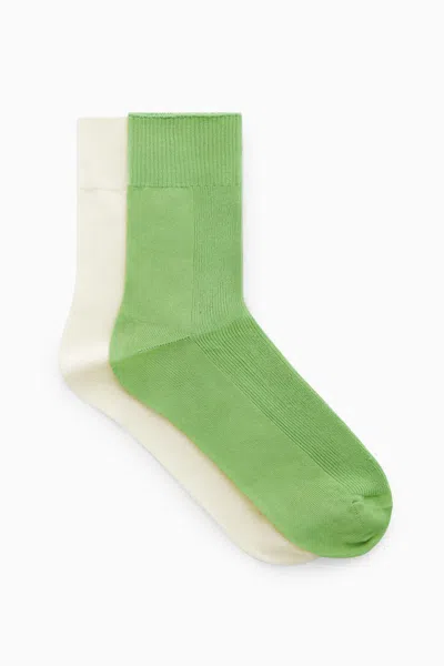 COS 2-pack Ribbed Panel Socks In Green