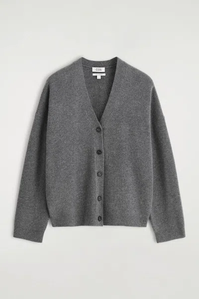 Luxuriously soft cashmere is a key tenet of the COS wardrobe. Rendered in a khaki-brown tone, this cardigan is crafted from premium Good Cashmere Standard® yarn and designed with a V-neckline, dropped shoulders, and chunky ribbed trims. Relaxed fit. Button closure. The Good Cashmere Standard® is owned by Aid by Trade Foundation (Ab. TF) and sets out requirements on animal welfare, land management, and herders' working conditions Shell: 100% GCS Cashmere. Excluding trims / Machine wash Back length of size S is 24.80" COS Women's V-Neck Cardigan in Gray Cashmere Size: Large Women > Womenswear > Knitwear > Cardigans