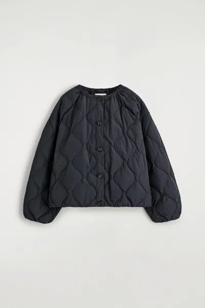 This season, the COS designers reframe the quilted jacket through a modern lens. This delicately gathered liner is made from nylon and cotton that's lightly padded with down for comfort and warmth. The elasticized hem enhances the relaxed shape. Relaxed fit. Button closure. Recycled polyamide is polyamide made from textile waste in production Shell: 59% Recycled polyamide (Recycled nylon), 41% Cotton. Lining: 100% Recycled polyester. Padding: 80% Recycled down, 20% Recycled feather. Excluding trims / Machine wash Back length of size S is 18.90" COS Women's Gathered Quilted Down Jacket in Navy Size: Large Women > Womenswear > Coats & Jackets > Jackets