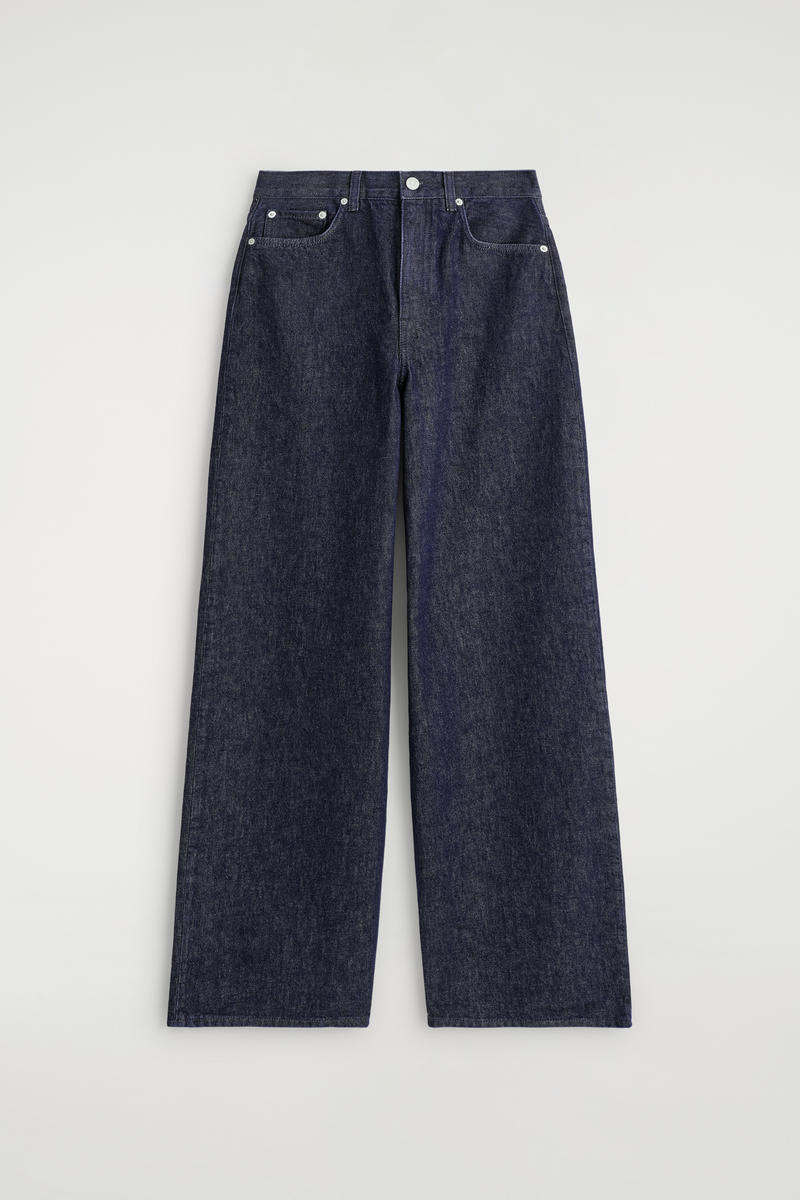 Introducing the Dial jeans: a wide-leg silhouette that channels the effortless appeal of '90s denim. They're made from 14oz organic- and recycled cotton that's washed a modern black tone and designed in an elongating, roomy shape. Relaxed fit, wide leg, high rise, full length14oz, shank button closure. Organic cotton is cotton grown without the use of artificial pesticides or fertilisers and contains no genetically modified organisms Shell: 80% Organic cotton, 20% Recycled cotton. Excluding trims / Machine wash Inside leg length of size 27 is 79.4cm / Model wears a size 27 COS Women's Dial Wide-Leg Jeans in Blue