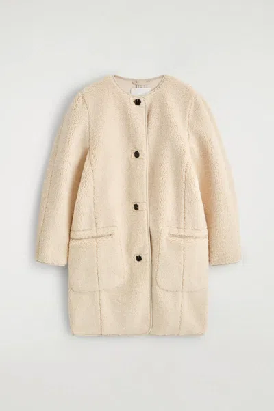 Texture-rich fabrics are the foundation of the Autumn Winter 2025 collection. Rendered in a refined espresso tone, this longline jacket is crafted from plush teddy that'll keep you warm in the colder months and features a rounded collar, welt pockets and carefully piped edges. Regular fit. Button closure. Recycled polyester is polyester made from PET bottles or end-of-life textile waste. The PET bottles or textile waste is mechanically recycled and processed into new yarn Shell: 100% Recycled polyester. Lining: 100% Cotton. Excluding trims / Dry clean Back length of size 6 is 36.14" COS Women's Longline Teddy Jacket in Beige Size: 12 Women > Womenswear > Coats & Jackets > Jackets