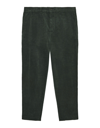 velvet, ribbed, no appliqués, solid color, mid rise, straight leg, regular fit, zipper closure, 1 button, multipockets, chinos , Color: Dark green , Size: 36
