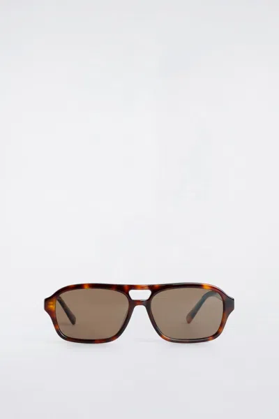 A renewed take on the classic aviator, these sunglasses will charge any look with modern appeal. They're shaped with rectangular tortoiseshell frames that complement the tortoiseshell frames. Come with a pouch100% UV protection. This product bears the CE mark Category III, which provides high level of sun-glare reduction and good UV protection COS Men's Rectangular Aviator Sunglasses in Brown