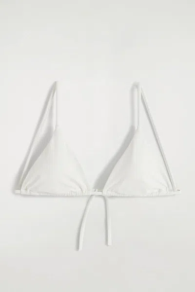 This bikini top is a timeless option for days spent in the sun. Offered in a rich chocolate-brown tone, it's cut with moulded triangle cups and has delicate rouleau straps. It's a natural choice for getaway packing; style it with the matching bikini briefs. Tie closure. Recycled nylon reduces our demand on limited natural resources and reduces greenhouse gas emissions Shell and cup lining: 80% Recycled polyamide (Recycled nylon), 20% Elastane. Excluding trims / Hand wash COS Women's Triangle Bikini Top in White