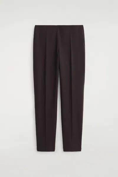 These modern trousers combine the classic COS barrel-leg shape with refined tailoring codes. Rendered in a rich espresso tone, they're crafted from a soft RWS wool blend and designed with pressed creases and subtle pockeets. Style them with a tonal knit. Regular fit. Hook, bar and zip closure. Recycled polyester is polyester made from PET bottles or end-of-life textile waste. The PET bottles or textile waste is mechanically recycled and processed into new yarn Shell: 53% Recycled polyester, 43% RWS wool, 4% Elastane. Excluding trims / Dry clean Inside leg length of size EU 36 is 65.9cm / Model wears a size EU 36 COS Women's Wool-Blend Barrel-Leg Trousers in Brown