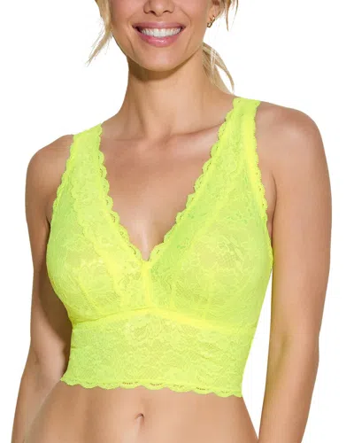Introducing the Cosabella Never Say Never Bralette, a stunning addition to your lingerie collection. Crafted with Italian artisanship, this bralette is designed to make you feel beautifully confident. The vibrant neon yellow color adds a fun pop to your wardrobe, while the lace material offers both comfort and style. The hook-and-eye closure ensures a secure fit, and the hand wash instructions make care easy. Imported and made with quality materials, this bralette is a must-have for any woman's underwear drawer.