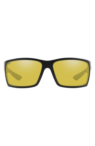 COSTA DEL MAR 64mm Mirrored Polarized Rectangular Sunglasses In Black Silver