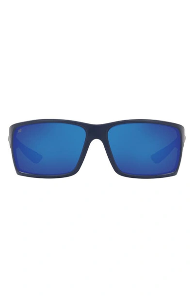 COSTA DEL MAR 64mm Mirrored Polarized Rectangular Sunglasses In Blue