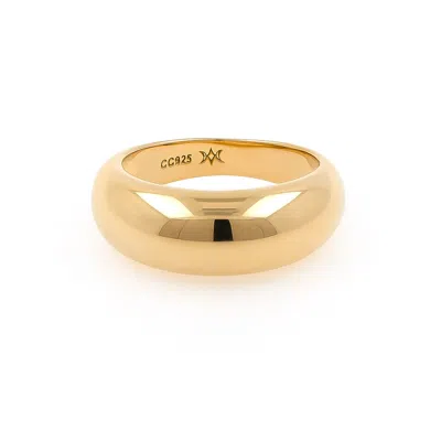 Gold Dome Ring, by Côté Caché. Adventurous and refined, this dome ring have a tapered finish that gives them a well balanced, shapely result. . Made from high quality sterling silver with 18ct gold vermeil. Jewellery Care Our products are all made from sterling silver, and we ensure high quality gold plating on all our gold finishes. Help maintain your jewellery by following these useful tips: Keep your jewellery away from chemicals such as perfume, makeup, sun-cream, body lotion, and nail polish remover. Keep your jewellery away from water where possible. Remove it before swimming, showering, exercising, etc. Try not to rub your jewellery, and remember to remove it before sleeping. Gently wipe away any dust or dirt with a soft, dry cloth, and store your jewellery separately. Your Côté Caché pouch is perfect for this! Applying a thin coat of clear nail varnish will help protect the plating from wear, and may also help if you have metal allergies. Silver products may oxidise over time. Revitalise them using a silver-cleaning cloth. Every Côté Caché piece is exclusively designed, combining symbolic aesthetics with innovative craftsmanship to create pieces that are as unique and beautiful as you are.