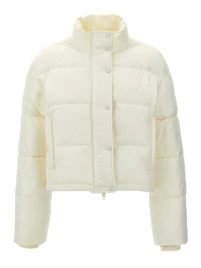COURRÈGES Cropped Puffer Jacket With High Stand Collar And Snap Button Closure In Neutral