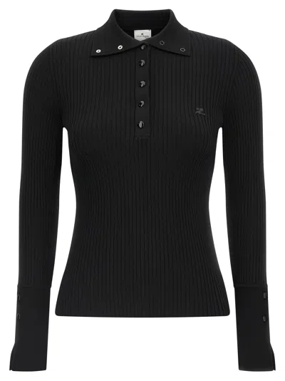 COURRÈGES Courreges Black Viscose Blend Polo Shirt