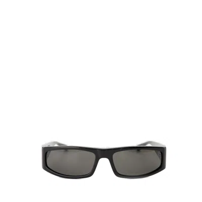 Logo sunglasses, temples decorated with brand logo, tinted lenses.