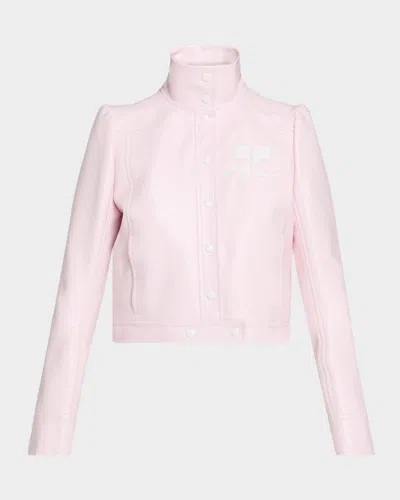 COURRÈGES Textured Vinyl Crop Jacket In Pink