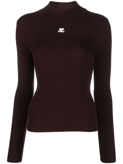 COURRÈGES Turtleneck Long-sleeve Rib Sweater In Burgundy