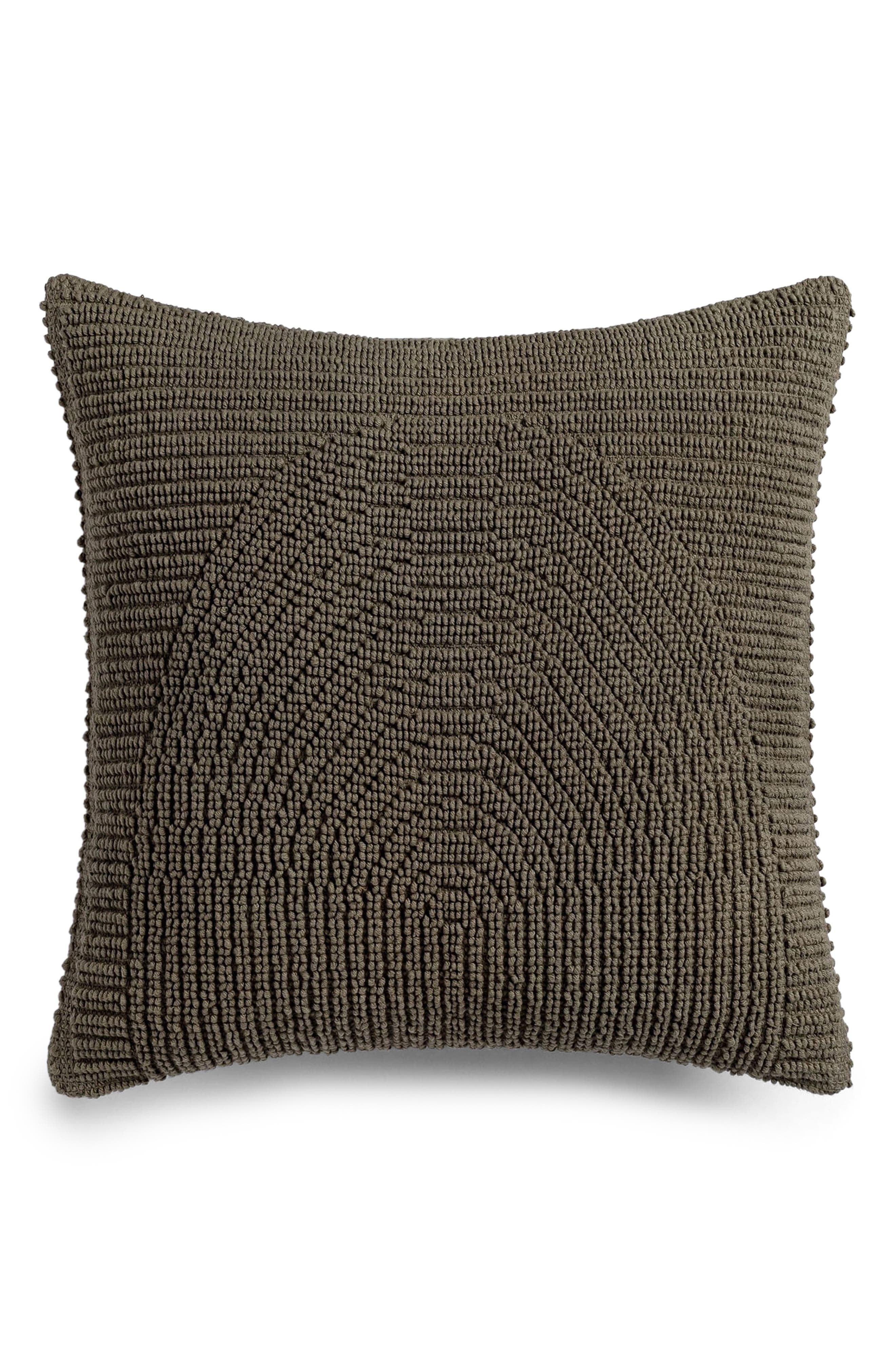 Hand-tufted construction brings to life the undulating texture of this accent pillow that tucks comfortably into your favorite cozy corner. 18" square Zip closure Cotton/viscose Machine wash, tumble dry Imported