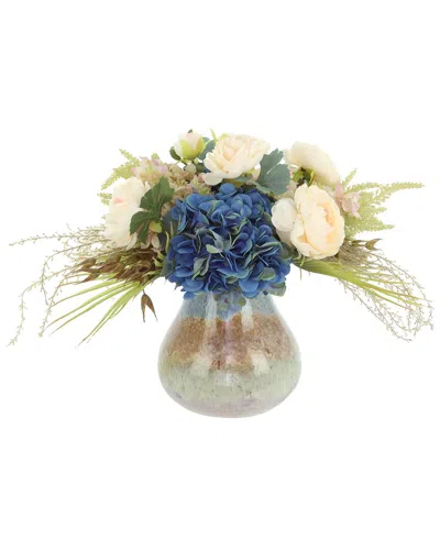 About The Brand: Fine Floral Arrangements For The Perfect Finishing Touch. Color/Finish: Blue; Beige Design Details: Offer Your Space A Soft Pop Of Color With This Stunning Faux Floral Arrangement. Featuring Dusty Blue Hydrangeas And Soft Cream Ranunculus Accented With Charming Palm Leaves, All Effortlessly Arranged In A Gorgeous Decorative Ceramic Vase. With No Maintenance Required Aside From An Occasional Dusting, You Can Simply Place Your Arrangement And Enjoy Its Beauty Season After Season, Without The Worry Or Hassle Of Upkeep. Measurements: 18In X 20In X 14In Polysilk; Ceramic Wipe Clean With A Dry Cloth Made In The Usa